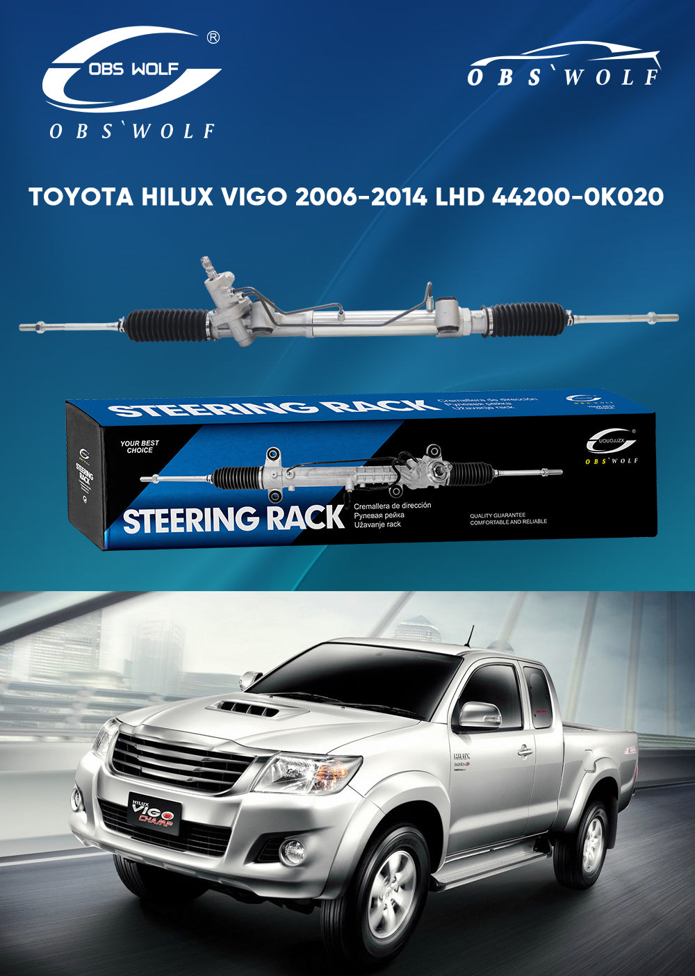 Add OBS Hydraulic Power Steering Rack for 06-14 Toyota Hilux Vigo KUN25 KUN50 2WD 44200-0K020 44200-0K070 LHD Steering Gear Box to the cart