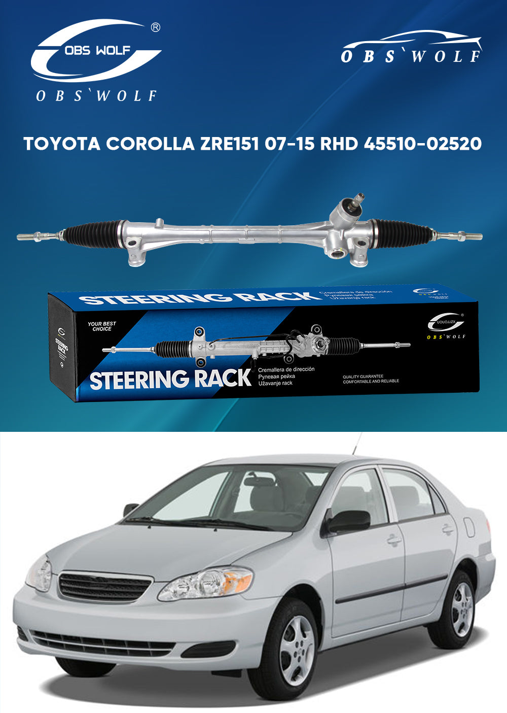 Add OBS Auto Parts Steering Gear Power Steering Rack and Pinion RHD for Toyota corolla ZRE152 06-13 45510-12360 45500-0234 45500-02120 to the cart