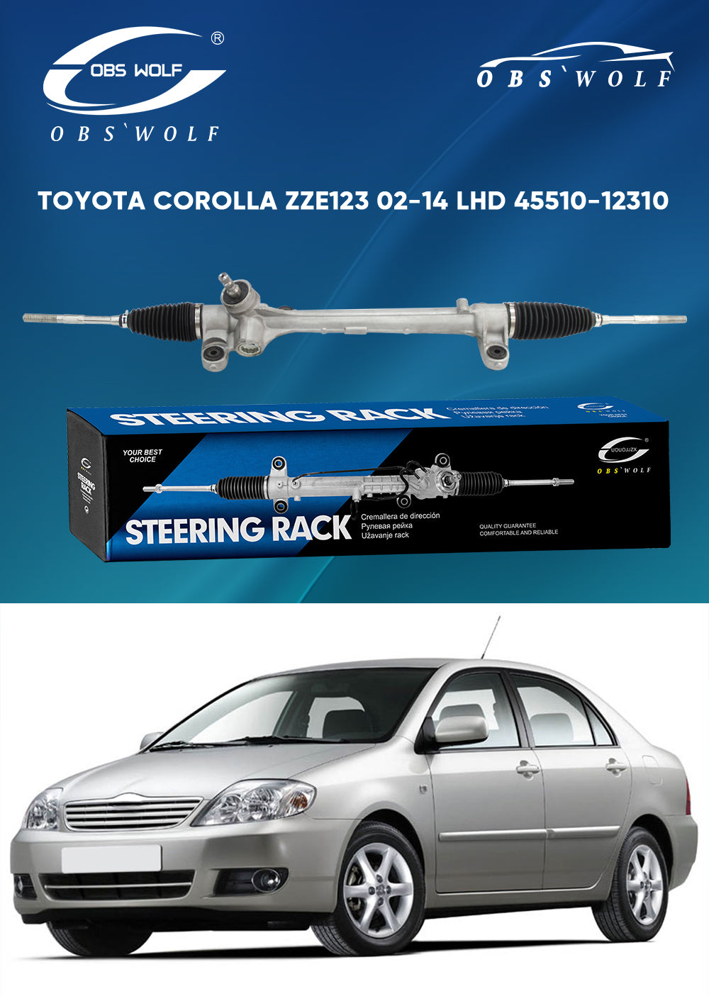 Add OBS Auto Steering Gear LHD Power Steering Rack for toyota corolla ZZE123 ZZE124 45510-12310 45510-02050 45500-02060 45510-02070 to the cart